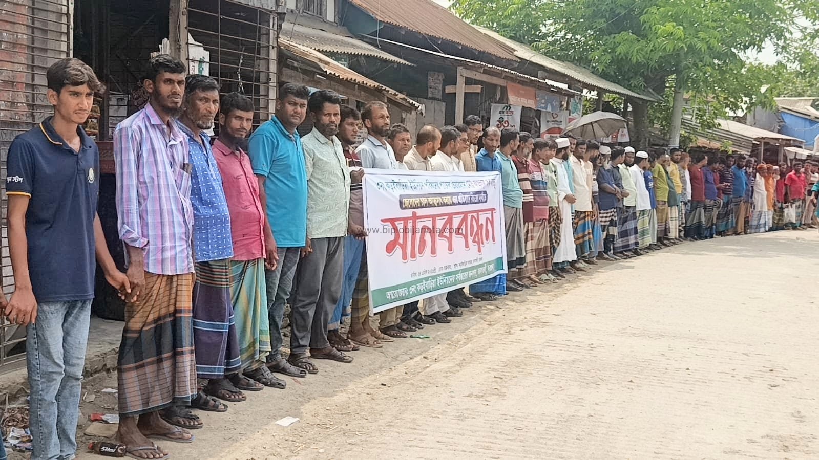 বরগুনায় জেলেদের চাল আত্মসাতের প্রতিবাদে চেয়ারম্যানের বিচারের দাবিতে মানববন্ধন